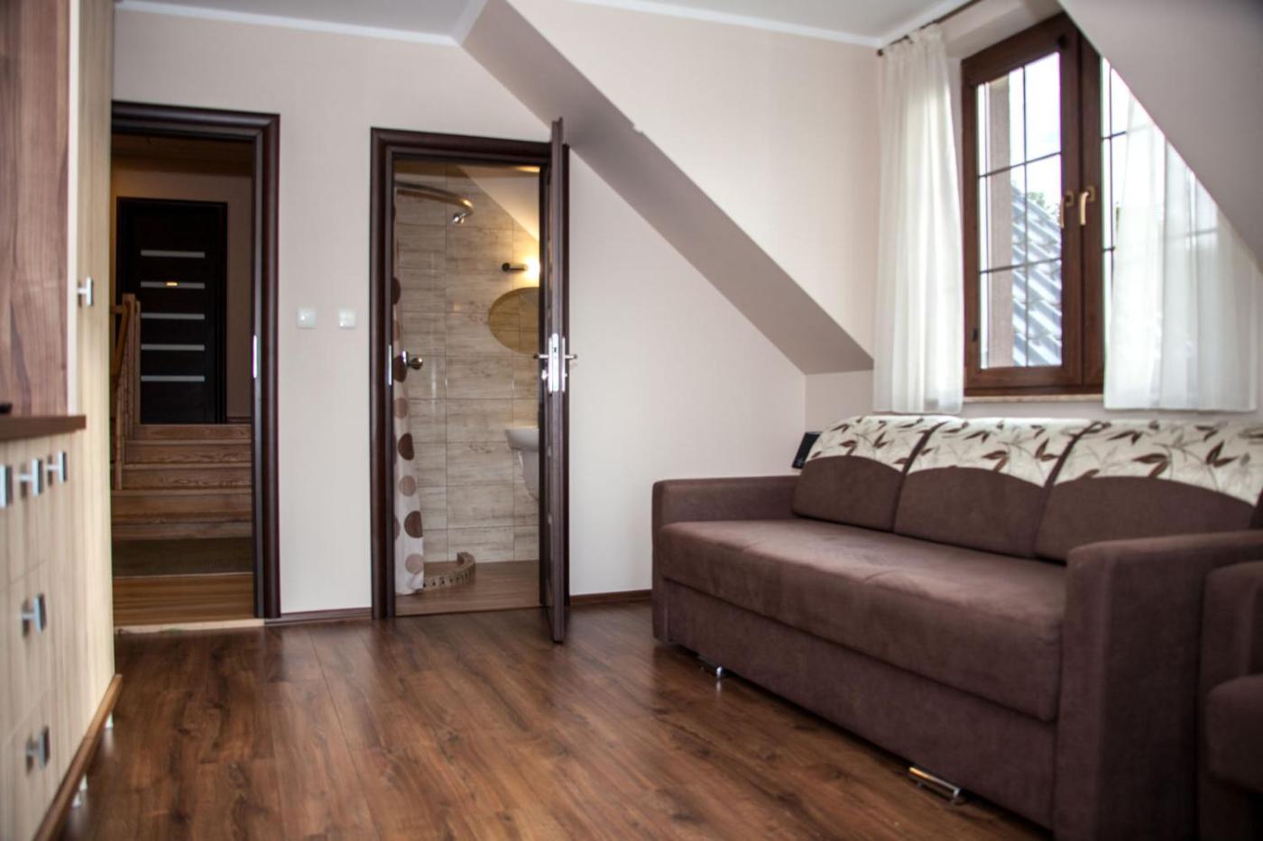 Pokój Czteroosobowy. Guests will have a special experience as this quadruple room features a sauna. The quadruple room provides a wardrobe, a high chair for children, as well as a private bathroom featuring a shower. Guests will find a stovetop, a refrigerator, kitchenware and a microwave in the well-fitted kitchenette. The quadruple room also has a barbecue. The quadruple room offers a flat-screen TV, a private entrance, a tea and coffee maker, a dining area as well as garden views. The unit offers 2 beds. Pokój Czteroosobowy - 4 osobowy. Powierzchnia pokoju ok.: 19 mkw. ;